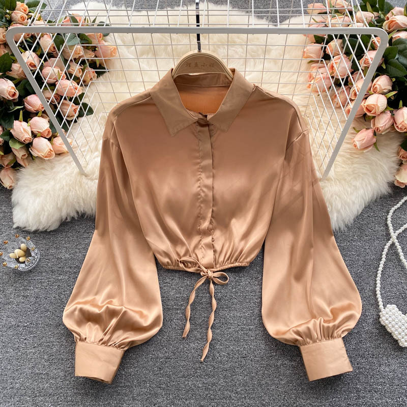 Women's Elegant Solid Chiffon Blouse Spring Summer Casual Long Sleeve V Neck Loose Shirt Office Lady Tunics Tops